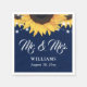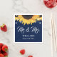 Complement your navy blue rustic wedding party with these floral wedding paper napkins featuring sunflowers and string lights on a burlap background. Matching items available.