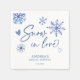 Neve em flocos de neve de amor noivado de inverno guardanapos monogramados modelo, guardanapos personalizados com flocos de neve boho azul poeirento com corações guardanapos personalizados para noivado boho suprimentos para festa de noivado de inverno