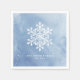 Os guardanapos personalizados de papel de Natal apresentam floco de neve branco decorativo em fundo de aquarela azul de inverno, moderno e moderno.