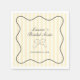 Ela está se casando! Celebre as próximas núpcias da sua noiva favorita com estilo com este design de guardanapo para chá de panela de noiva, apresentando uma moldura ondulada desenhada à mão e um laço caprichoso em um fundo listrado de amarelo suave.