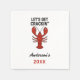 Tema náutico, verão e comida marítima. Uma lagosta vermelha sobre fundo branco. Citação: o Vamos fica preso Personalizar e adiciona um nome e um ano.
