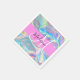 Pêssego feminino, púrpura e aqua nome do monograma holográfico iridescente e guardanapos iniciais. Seu nome personalizado e monograma são escritos em um elegante roteiro escrito à mão com um fundo rosa. Um aniversário perfeito ou presente de Natal!