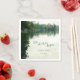 Para a sua celebração de casamento ao lado do lago ou do rio, esta rústica "Nossa aventura começa" guardanapos de recepção de casamento, criada da minha própria fotografia pessoal de caiaque e com um sutil efeito de aquarela digital e elementos tipográficos, mostra uma bela cena da natureza sob um céu coberto com água levemente ripada refletindo verdes distantes, árvores de cedro e estruturas rochosas - por katz_d_zynes