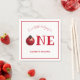 Guardanapos para a sua primeira festa de aniversário. Inclui as palavras "Nossa pequena joaninha é um" com a palavra 'um' iniciada com uma ilustração de joaninha. Os guardanapos também incluem um nome personalizável.