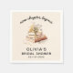 Guardanapos elegantes para chá de panela "Novo Capítulo Começa", projetados para complementar o tema da celebração. Esses guardanapos sofisticados adicionam um toque pessoal e refinado ao evento, perfeitos para os convidados usarem enquanto desfrutam de bebidas e lanches. Um detalhe atencioso que une o tema e adiciona um toque especial ao chá.