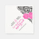 Os guardanapos de casamento, no estilo luxo moderno, têm uma faixa luxuosa, preta e branca, e um painel de folhas, e duas flores brilhantes, cor-de-rosa, num fundo branco. Excelente de coordenação com um simples preto e branco com um traço de casamento rosa brilhante ou para um casamento moderno. Edite esses guardanapos de arte com seu nome de noiva e noiva. Perfeito para quem gosta de simplicidade e romance luxo moderno. Ideal para jantas de casamento, excelente para embrulhar fatias de bolo de casamento e para uso na recepção de casamento. Design e arte original de Sarah Trett.