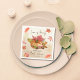 O amor está borbulhando no outono, modelo de guardanapos personalizados com monograma para noivado de outono, aquarela de abóbora, canela, especiarias, xícara de chá, folhas de bordo, fundo marrom para decoração de mesa personalizada para noivado de outono, guardanapos personalizados com nome.