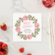 Guardanapos de PAPEL para Chás de Noiva com tema botânico rústico charmoso com uma coroa de rosas selvagens cor-de-rosa floridas e folhagem verde elegante.