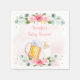 Estes guardanapos de chá de fraldas apresentam flores de aquarela com uma garrafa de cerveja e bebê e um confete de ouro sujo.