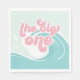 O Grande! Os guardanapos da festa do primeiro aniversario Surfing Beach com ondas de turquesa e escrevendo rosa.