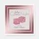 Estes guardanapos glamourosos da festa da Noite de Jogo das Senhoras apresentam um fundo cor-de-rosa brilhante, parecido com metálico, com um quadrado cor-de-rosa suave e pincelado no centro. O quadrado cor-de-rosa pincelado é bordado com uma borda de estilo dourado champanhe e um segundo quadro maior é colocado fora do primeiro. Um grande par de dados brilhantes cor-de-rosa é colocado no centro e uma espiral brilhante de sotaque do ouro aparece perto do fundo. Um nome de host de exemplo é apresentado na parte inferior do guardanapo, que pode ser personalizado para incluir o nome, a família ou o nome comercial do seu próprio host.