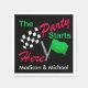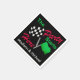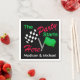 Estes guardanapo do partido do papel do cocktail são grandes para qualquer tipo de partido tailgaiting ou de raça com uma bandeira verde e uma bandeira checkered preto e branco. Personalize com um nome, o vencedor da raça ou as outras palavras para sua própria mensagem. O design é uma bandeira checkered preto e branco e uma bandeira verde com as palavras "que o partido começa aqui". Seu tudo em um fundo preto que você possa personalizar a uma outra cor. Inteiramente customizável para seu partido ou o outro evento. Este design é arte original por Phyllis Dobbs. Excelente para todos os eventos de competência, do automóvel do carro, da motocicleta, das bicicletas, e de outro.
