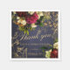 A recepção de casamento da Vintage personalizada obrigado seu guardanapo de papel em um fundo azul-marinho escuro com roteiro de tipografia de ouro, folhagem e folhas de ouro e belas rosas de burlômetros vermelhos escuros e de creme de marfim. +++++++ Adequado para um inverno floral / Temas de Natal / outono precipitações de casamentos elegantes.