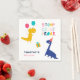 Festa de aniversário de dinossauros brancos, bonitos e coloridos "Obrigado por passar." guardanapos personalizados. Ilustração desenhada à mão por Kristine Lee www.kristineleedesigns.com