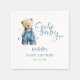 Set the scene for a joyful celebration with these blue jean baby themed baby shower paper napkins. Featuring an adorable bear in denim dungarees, and playful blue stars scattered across a modern baby shower template.