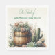Adicione um toque rústico e encantador ao seu chá de bebê com este guardanapo lindamente desenhado, apresentando uma ilustração em estilo aquarela de cactos e suculentas dispostos dentro e ao redor de um barril de vinho. Os tons suaves e terrosos e os detalhes botânicos criam uma atmosfera quente e acolhedora - perfeita para uma celebração com tema desértico ou inspirada na natureza.