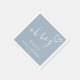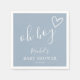 Um guardanapo de papel moderno minimalista para baby shower com um coração desenhado à mão e tipografia estilosa em um fundo azul poeirento. Criado por Thisisnotme©