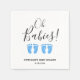 Estes bonitinhos guardanapos de papel chá de fraldas para garotos gêmeos são decorados com a tipografia moderna e os pés de bebê aquarela em azul pastel. Original Watercolor © Michele Davies.