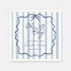 Os guardanapos de chá de fraldas "Oh Boy", bonitos e modernos, com listras azuis e brancas empoeiradas, uma moldura ondulada desenhada pela mão e uma fita azul. Simples, porém caprichoso, guardanapos de festas, perfeito para uma futura mãe que quer um chá elegante sem comprometer o elemento doce e divertido de sua alegre celebração.