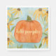 Bem-vindos, caiam em sua casa com este acolhedor guardanapos de água "Olá Pumpkin". Apresentando uma abóbora pintada à mão cercada por girassóis ouros. Design: trabalho de arte de cor d'água original de abóbora e suspensórios de olhos pretos. Texto: "olá, abóbora" no roteiro da fazenda: Perfeito para outono, colheita, Ação de Graças ou estilo de fazenda aconchegante