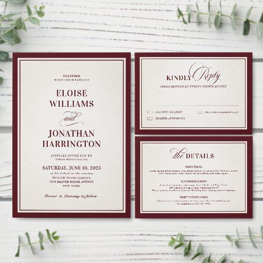 Old Money Modern Formal Burgundy Luxury Wedding Criado por Bliss Design Studio