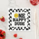 Add a groovy touch to your celebration with our “One Happy Dude” retro checkerboard birthday napkins! Designed with a bold yellow happy face and classic black accents, these nostalgic paper napkins bring playful vibes to your little dude’s big day. Perfect for wiping up cake and capturing memories in style! These napkins are a part of a birthday party collection with coordinating items available.