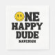 Add a groovy touch to your celebration with our “One Happy Dude” retro birthday napkins! Designed with a bold yellow happy face and classic black accents, these nostalgic paper napkins bring playful vibes to your little dude’s big day. Perfect for wiping up cake and capturing memories in style! These napkins are a part of a birthday party collection with coordinating items available.