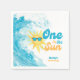 Bring the sunshine to your snack table with these adorable surf-themed cocktail napkins! Featuring a watercolor ocean wave, a smiling sun in cool shades, and the sweet “one in the sun” phrase, these napkins are a perfect match for your baby’s beachy first birthday bash. The tropical mix of turquoise, coral orange, and yellow adds a splash of summer fun to every sip and snack. Whether you're serving juice or mocktails, these napkins are the cutest little detail to tie your surf + sun theme together. ☀️🌊🍹