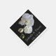 A Orquídea Branca bonito no Livro Negra Napkins adicionará um talento elegante à sua recepção de chás de panela ou casamentos. Estes elegantes guardanapos descartáveis de casamento botânico apresentam uma fotografia floral de flores de orquídea de falaenopse branca no caule com um fundo preto.