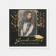 Formando Dourado de Graduação Preta para o Ouro Confetti Foto Napkins. Script de ouro de tendência com confetti de ouro e boné de formatura de ouro em fundo preto. Adicione a sua foto favorita e personalize-a com o nome do seu formando.