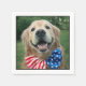 Feliz 4 de julho, EUA! Mostre seu espírito patriótico e apimente sua festa com esses bonitinhos guardanapos de ouro! Design apresenta uma fotografia de um cão sorridente celebrando o Dia da Independência com uma gravata vermelha, branca e azul de arco.