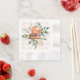 Uma linda guardanapo de chá de panela, para combinar com os pratos de papel, apresentando um padrão de aliança de ouro sobreposto com uma enorme rosa laranja em aquarela no centro da guardanapo.