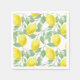 Super lindo padrão de frutas de limão é perfeito para chás de noiva! O design apresenta um fundo branco com um padrão de limões e folhas verdes. Esse guardanapo de papel com padrão de frutas cítricas é perfeito para servir bebidas no seu chá de noiva temático de limão.