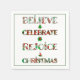Espalhe o espírito natalino com este design fofo e estampado que apresenta "Acredite, Celebre, Alegre-se, Natal" em tipografia festiva repleta de motivos natalinos vermelhos e verdes. Cada letra exibe enfeites, árvores de Natal, poinsettias e padrões sazonais clássicos que trazem alegria e calor às suas celebrações.