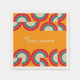 Padrão moderno do século médio. As formas circulares simples giram aleatoriamente. Esquema de cores super e vívidas em laranja, vermelho, azure e bege.