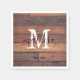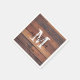 Guardanapos com data de estabelecimento, nome e monograma em Script Marrom com padrão de madeira rústica