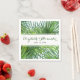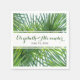 Um elegante guardanapo de casamento com um design verde de palma tropical que inclui uma área de modelo para seus nomes em belos escritos modernos em verde e a data.