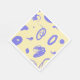 Este guardanapo de papel exibe linhas de lavanda e manchas artísticas sobre um plano de fundo branco amarelado.