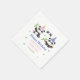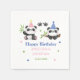 Cute baby panda kids birthday paper napkins featuring two adorable panda wearing party hat with a panda footprint and surrounded by stars.