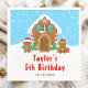 Este guardanapo bonitinho e festivo apresenta uma casa de pão de gengibre fofo decorada com doce vermelho e verde. Além disso, são adoráveis gengibres com presentes, vestidos com chapéus de Papai Noel e cachecol. Ao fundo está um céu azul brilhante de inverno com flocos de neve em queda elegante. O texto combina fontes decorativas e sans serif para um aspecto na moda e moderno. Isto é perfeito para uma festa de decoração da casa de pão de Natal.