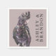 Um adorável papagaio tropical em aquarelas de ameixa roxa faz um guardanapo único para a noiva e o noivo. A cor de fundo é uma lavanda macia e empoeirada coordenadora. Personalize com os nomes da noiva e do noivo. Estes guardanapos são uma escolha excelente para recepções de casamento, festas de noivado, aniversários, aquecimento doméstico ou para se divertir em casa.