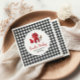 Papais noeis Bebê Natal chá de fraldas com roupas de bebê e xadrez de búfalo preto.
