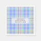 Fraldas de papel doce e chá de fraldas, feitas em um padrão de xadrez pastel cor-de-rosa, azul e verde-menta. Uma área de texto branco, no meio do guardanapo, tem texto preto personalizado pronto para personalizar. Estão disponíveis copos e placas de papel correspondentes.