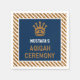 Os guardanapos de papel elegantes do qiqah, com uma bela coroa dourada e uma tipografia vibrante contra um fundo azul e falsa de ouro brilhante.
