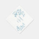 Este guardanapo de papel projetado para o casamento é mostrado com uma adorável impressão de folhas azuis. Oferecemos também placas de papel correspondentes. Personalize este item e altere o texto do exemplo para o seu com este modelo. Imagem licenciada