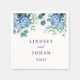 Este guardanapo de papel de casamento é mostrado com uma adorável impressão de cor de água azul hydrangea floral. Personalize este item e altere o texto do exemplo para o seu com este modelo. Imagem licenciada