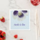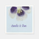 Personalizadas, iniciais em guardanapos de papel. Abrigos roxos, brancos e azuis com foto floral.