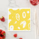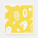 Este guardanapo de papel exibe linhas brancas e manchas artísticas sobre um plano de fundo amarelo alaranjado.