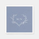 Crie a recepção perfeita com nossos guardanapos de papel monograma elegantes. Design apresenta uma coroa botânica folheada rodeando as iniciais do monograma da noiva e do noivo sobre fundo azul. Personalize a design com as iniciais da noiva e do noivo.