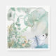 Bonito guardanapo de papel em pastéis verdes, azuis e de pêssego. Imagem de uma borboleta e flor. Excelente para desacoplamento e outros artesanatos de papel.